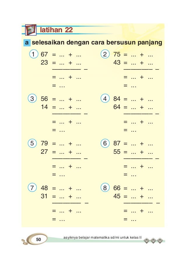 Daftar isi buku asah otak #2 latihan berhitung, menjumlah, dan mengurangi. Mengandalkan buku latihan yang dijual di toko, juga sering membuat kita berpikir ulang untuk membelinya. Gunakan tombol download yang tersedia kemudian buka link download yang muncul. Soal latihan penjumlahan anak sd dengan beberapa variable author: Soal latihan penjumlahan anak sd dengan beberapa variable download print modul matematika latihan mandiri created date: